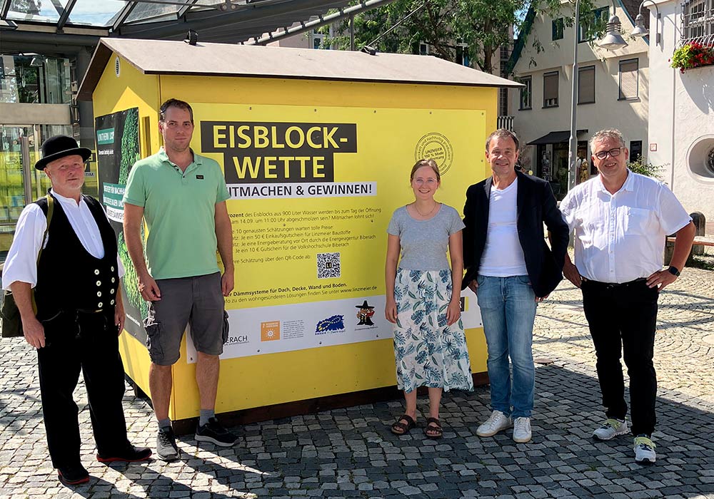 Im Rahmen des Ökodorfs auf dem Biberacher Viehmarktplatz wurde die Eisblockwette offiziell beendet. Die Aktion veranschaulichte eindrucksvoll die Vorteile moderner Wärmedämmung: Lediglich 10% des in der gedämmten Holzhütte platzierten Eisblocks sind im Laufe des einmonatigen Zeitraums geschmolzen …