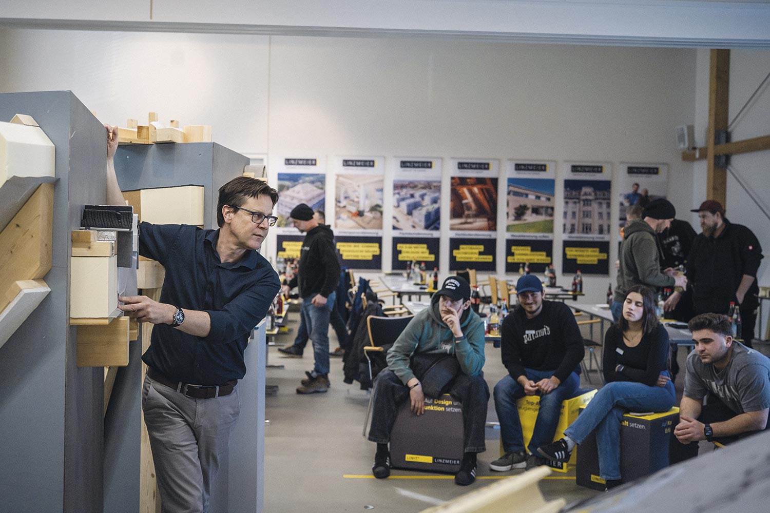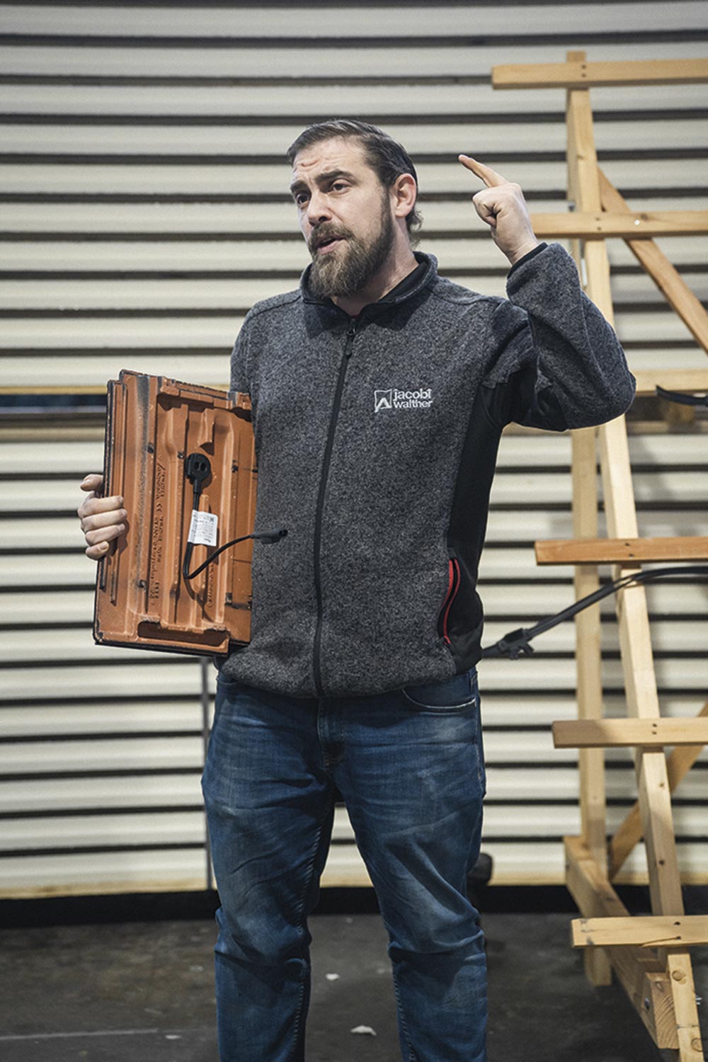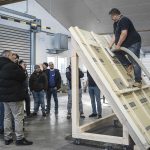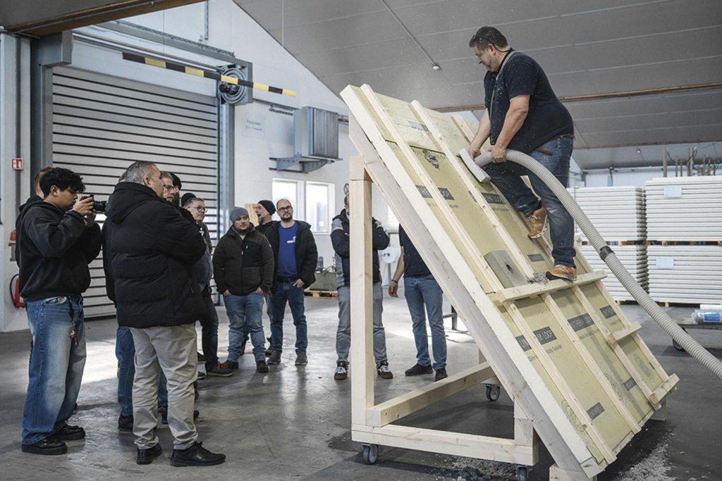Ergänzt wurden die Seminare durch zwei Partnerunternehmen: Der Dachziegelhersteller Jacobi Tonwerke präsentierte das Steildach als Kraftwerk und zeigte seine innovativen Photovoltaik-Indachlösungen. Der Spezialist für Einblasdämmung Isocell erläuterte das Hybriddach aus PU-Hartschaum und Zellulose-Einblasdämmung und demonstrierte das fachgerechte Einblasen an Modellen.