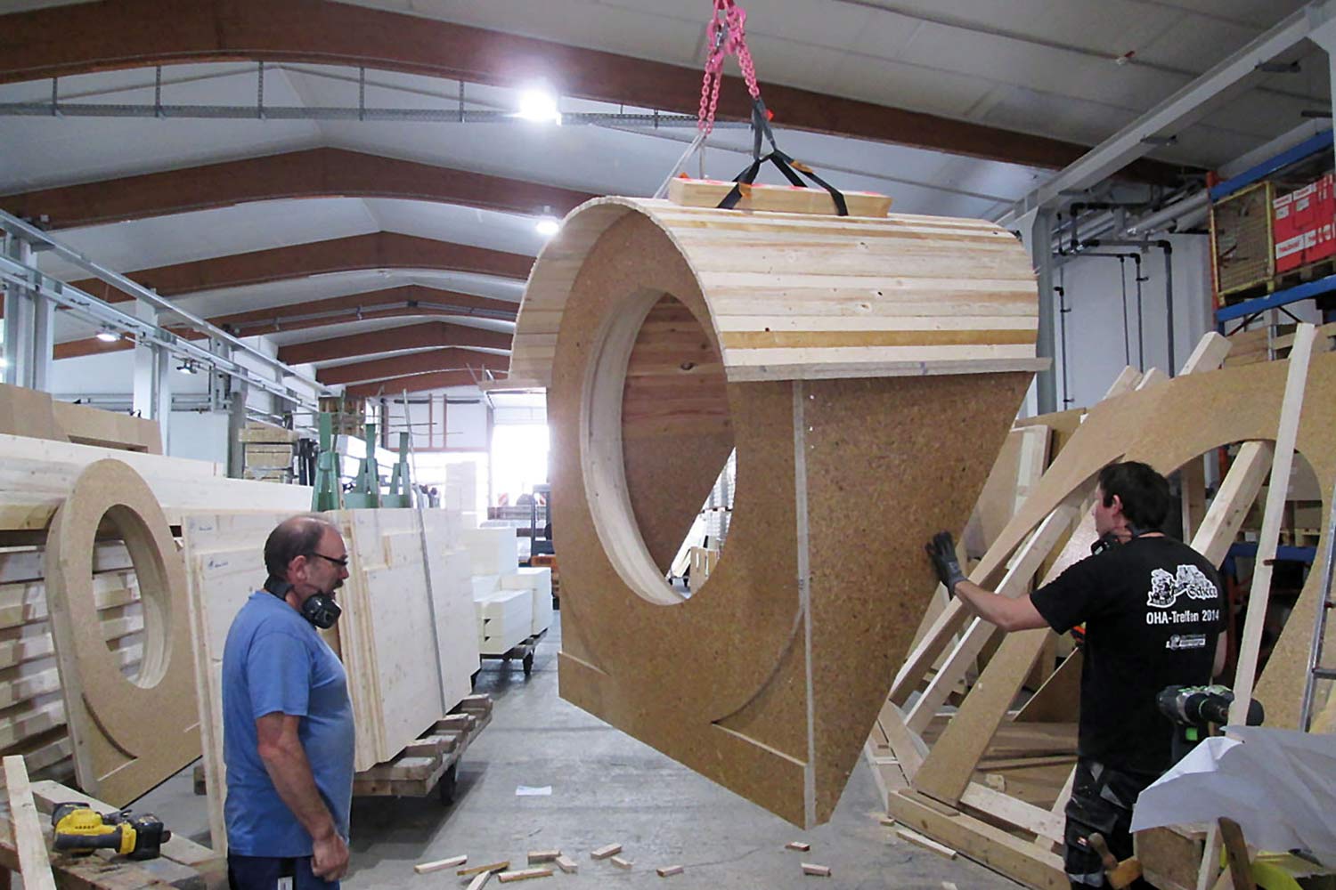 Die Gauben passten hervorragend auf das Dach. Nach ihrer Montage verblieben für die Zimmerer der Anschluss der luftdichten Ebene und die Versiegelung des Dachs mit Bitumenbahnen, bevor die Blecheindeckung durch einen externen Spezialbetrieb erfolgte. Der Wasserturm mit seinen markanten Gauben bildet heute von außen wie von innen einen besonderen Blickfang.